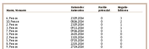 - u.a.: zu Eigenverantwortlichkeit, Motivation, Kontaktfähigkeit, Auftreten, Initiative, Systematik, Misserfolgstoleranz